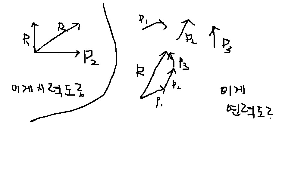 힘들이 평행에 가까울때 힘의 합성이라면 첫번째 그림 P1 P2 P3(R의 반대방향) 두번째 그림 P1 P2 P3 P4(R의 반대방향)