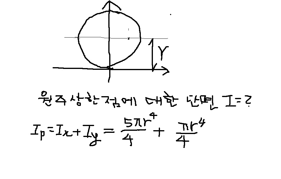 반지름 r인 원형 단면의 원주 상한점에 대한 단면 2차 모멘트를 구하는 건데여