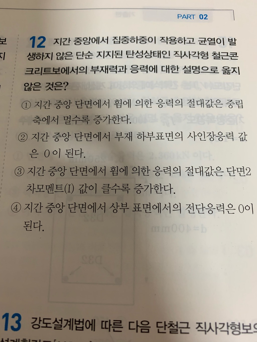 토목 2013년 국가직 9급 12번문제 질문있습니다. 작성자qqrree|작성시간20.01.01|조회수302 목록 댓글 2 글자크기 작게가 글자크기 크게가 12번 지문에서 2번과 4번은 왜 저런결과를 알 수 있는지 잘모르겠네요. 해답지엔 3번이 틀린이유만 나와있어서 2,4번이 왜 저런지 알 수가 없네요. 다음검색 현재 게시글 추가 기능 열기 북마크 공유하기 신고 센터로 신고 댓글 댓글 2 댓글쓰기 답글쓰기 댓글 리스트 작성자이학민(뚱글게살자) | 작성시간 20.01.02 2. 사인장응력은 순수전단응력 상태에서 발생하는데 하부에서는 전단응력이 영이라 없습니다.4. 마찬가지로 보에서 상부와 하부의 전단응력 크기는 영입니다. 답댓글 작성자qqrree 작성자 본인 여부 작성자 | 작성시간 20.01.04 감사합니다 댓글 전체보기
