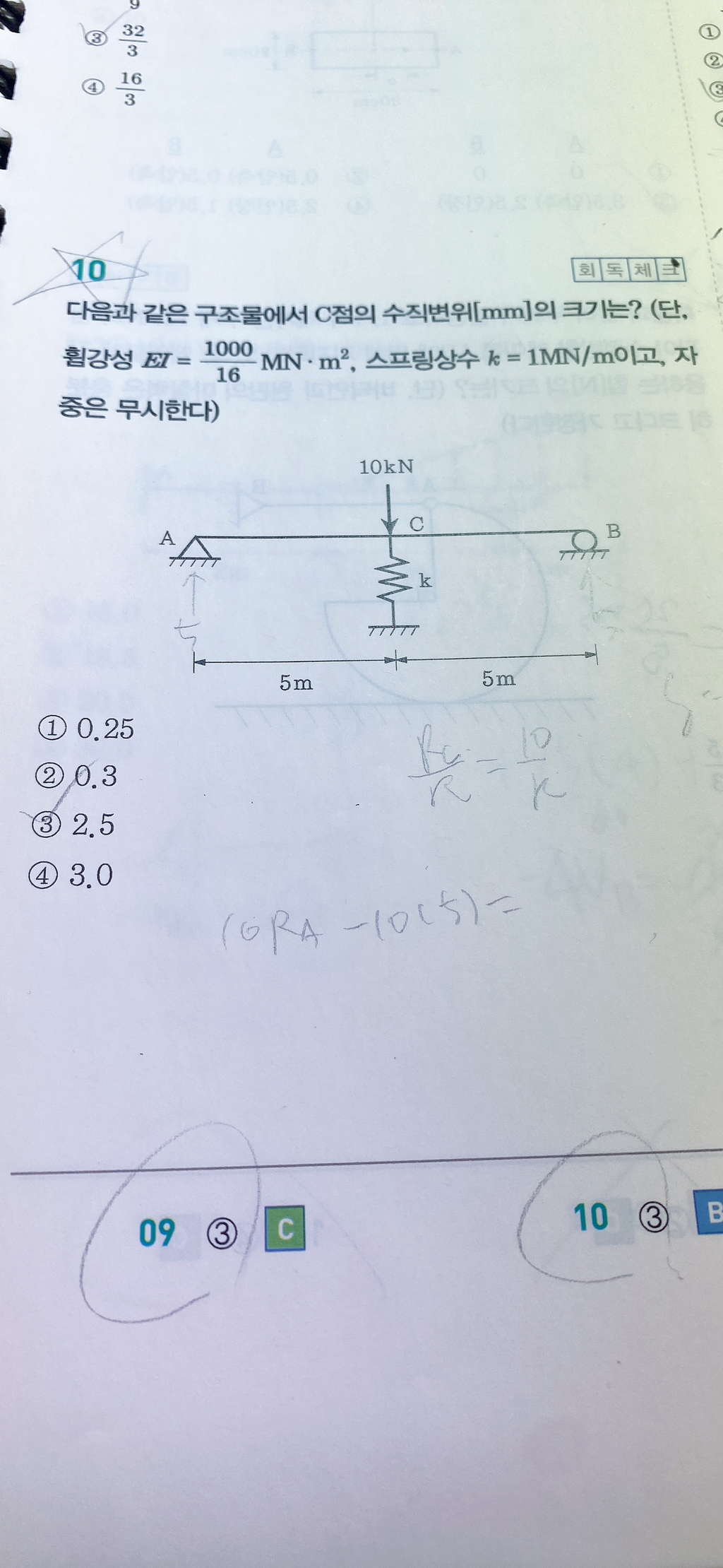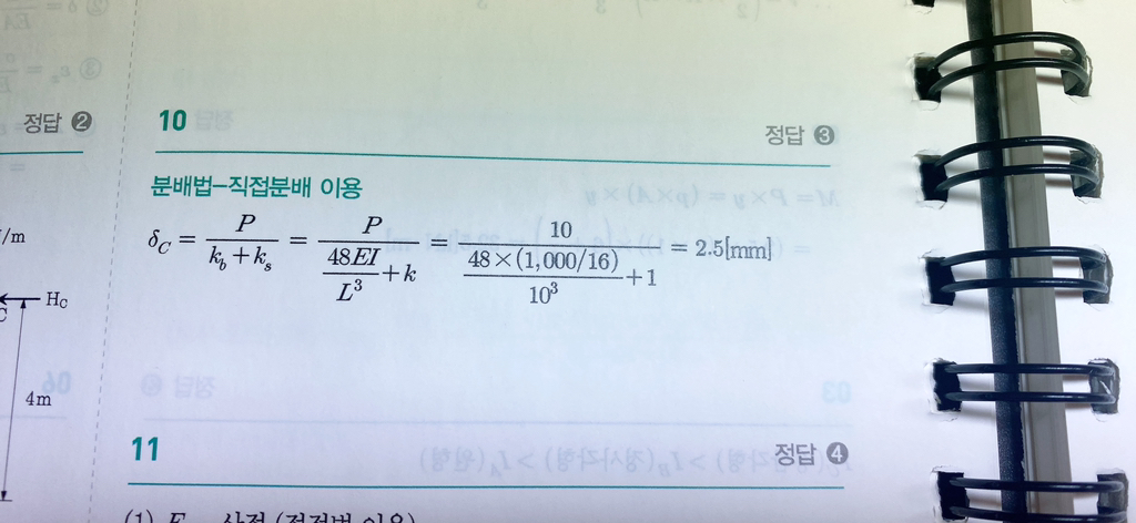 분배법-직접분배 15국가직 10번문제 작성자왓따마|작성시간24.03.08|조회수112 목록 댓글 2 글자크기 작게가 글자크기 크게가 이문제 PL^3/48EI 공식사용해서 그냥 푸는거아닌가요? 왜 분자 분모가 뒤집히고 분모에 P는 또 어디로 가고 +1은 또 먼가요 그리고 소문자 b랑 소문자s는 갑자기 어디서 나오는거죠? 다음검색 현재 게시글 추가 기능 열기 북마크 공유하기 신고 센터로 신고 댓글 댓글 2 댓글쓰기 답글쓰기 댓글 리스트 작성자coolneck | 작성시간 24.03.08 1. 해설은 가로방향분배법입니다 라이트 강의만 들으셨으면 안 배운 내용이라 모르시는 게 맞아요베이직 강의에서 배우는 내용이에요2. 책에 쓰신 것처럼 Rc/k로 구할 수도 있는데 부정정구조물은 평형방정식으로 반력 못 구합니다변위일치법으로 Rc를 구해야 하는데 이것도 베이직 강의에서 배우는 내용이에요 답댓글 작성자왓따마 작성자 본인 여부 작성자 | 작성시간 24.03.09 네 감사합니다 댓글 전체보기