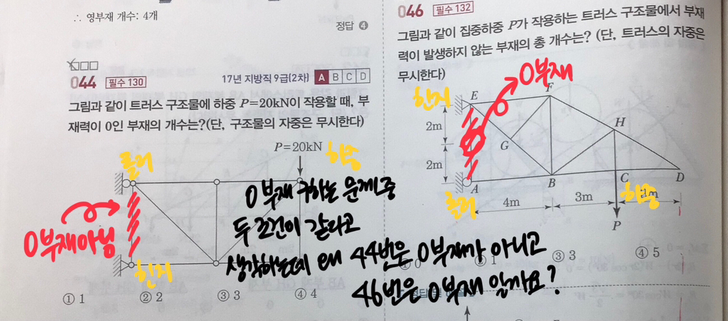 0부자 구하는 문제 중 두 문제 다 조건이 같다고 생각하는데 왜 빨간색 칠한 부재에서 44번은 0부재가 아니고 46번은 0부재 일까요?