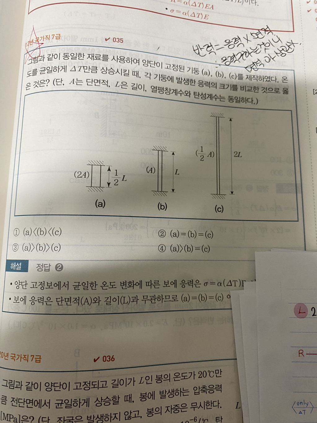 이 두문제를 풀때 하나는 응력을 구하는 것이고 하나는 축력을 구하는것인 두 문제를 풀다 궁금점이 생겼습니다