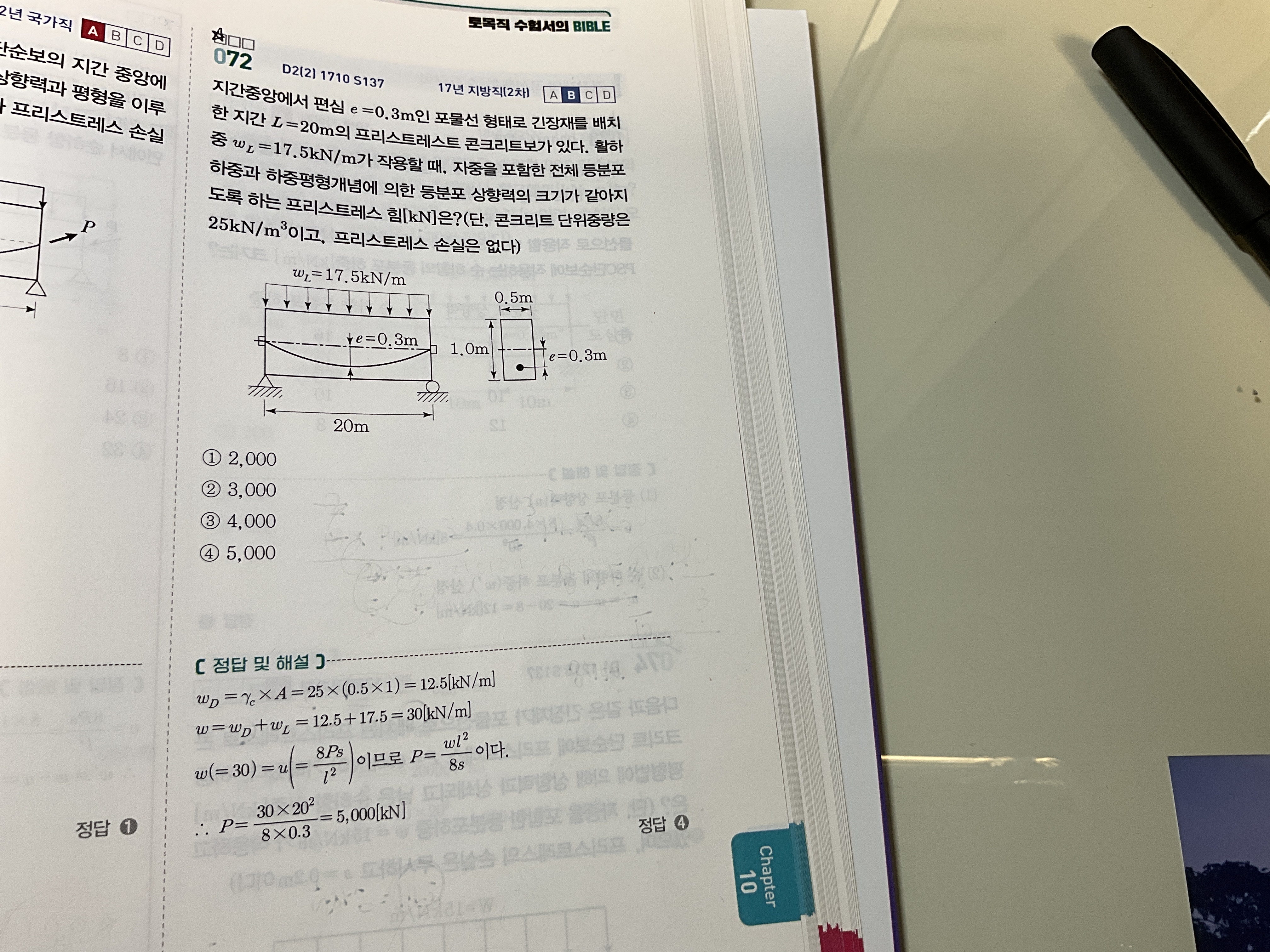 해설을 보니 이건 이 문제는 앞서 나온 문제들과는 다르게 활화중에 고정하중(?)을 더하는 거 같습니다.