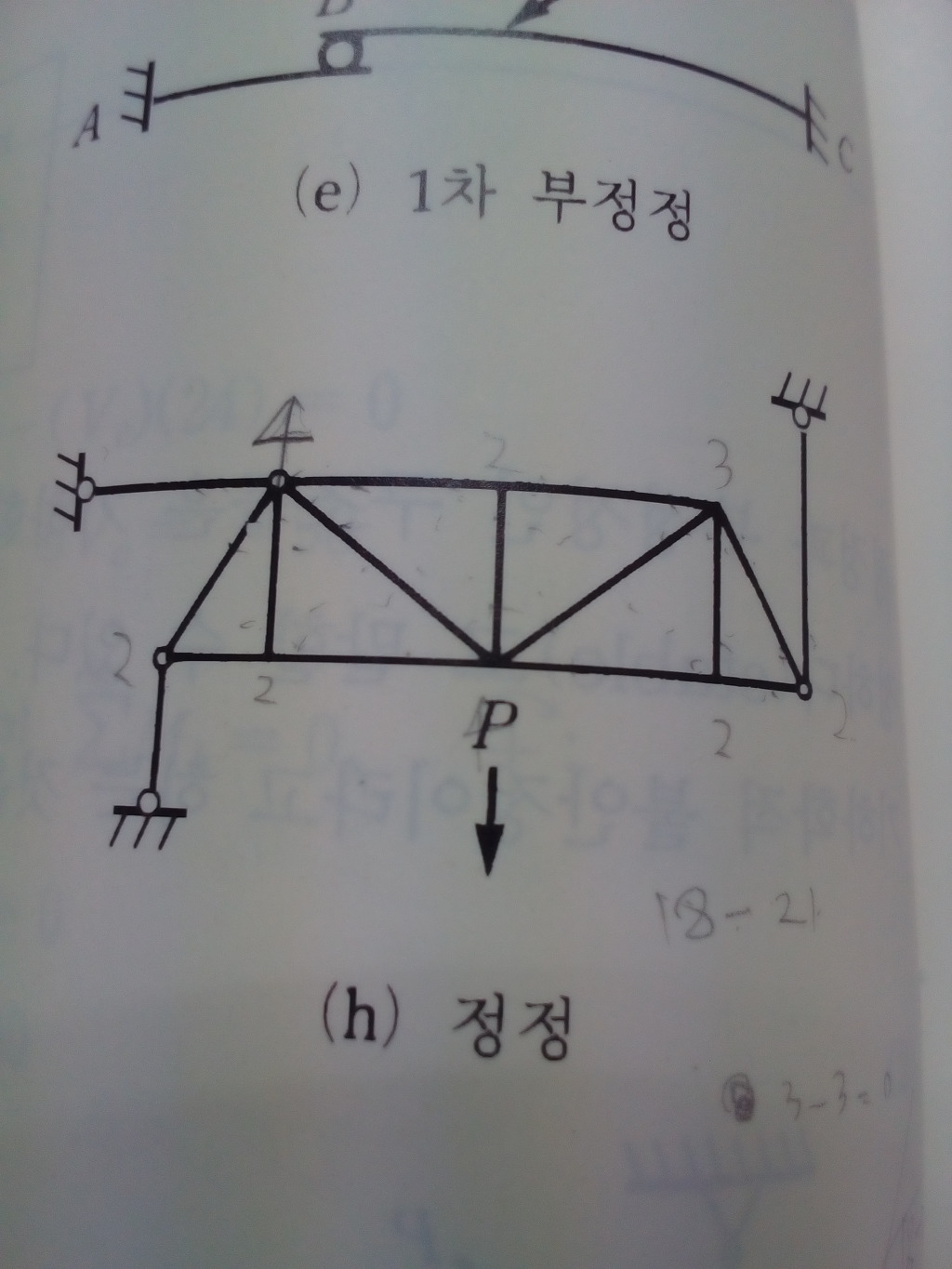 총 부정정차수 = -3 으로 불안정 으로 판단하였는데 전공책 상에는 위 구조물이 안정으로 나오더라구요..