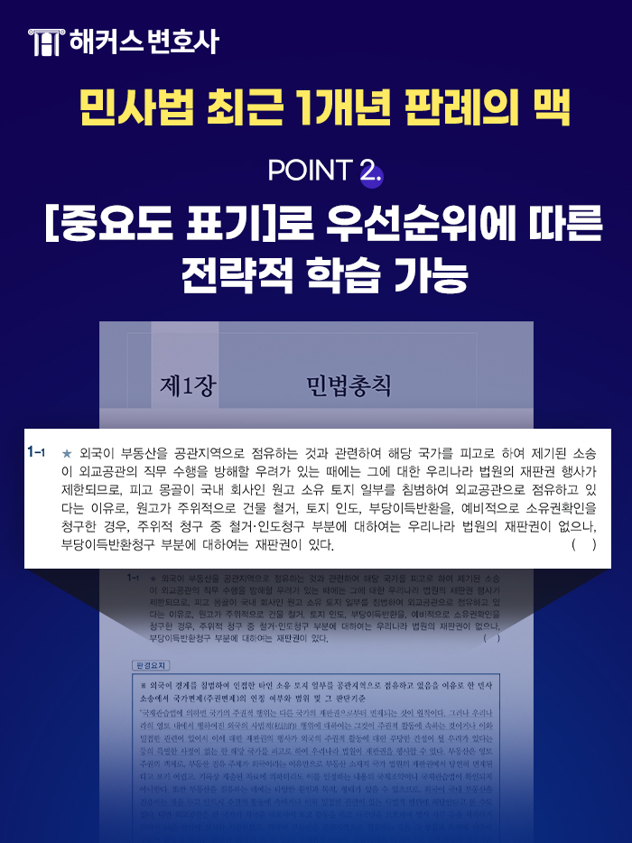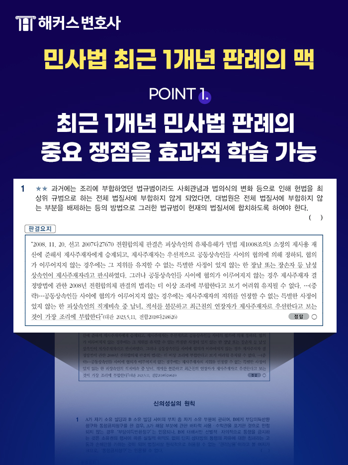 Point 01. 최근 1개년 민사법 판례의 중요 쟁점을 진도별로 정리할 수 있습니다.