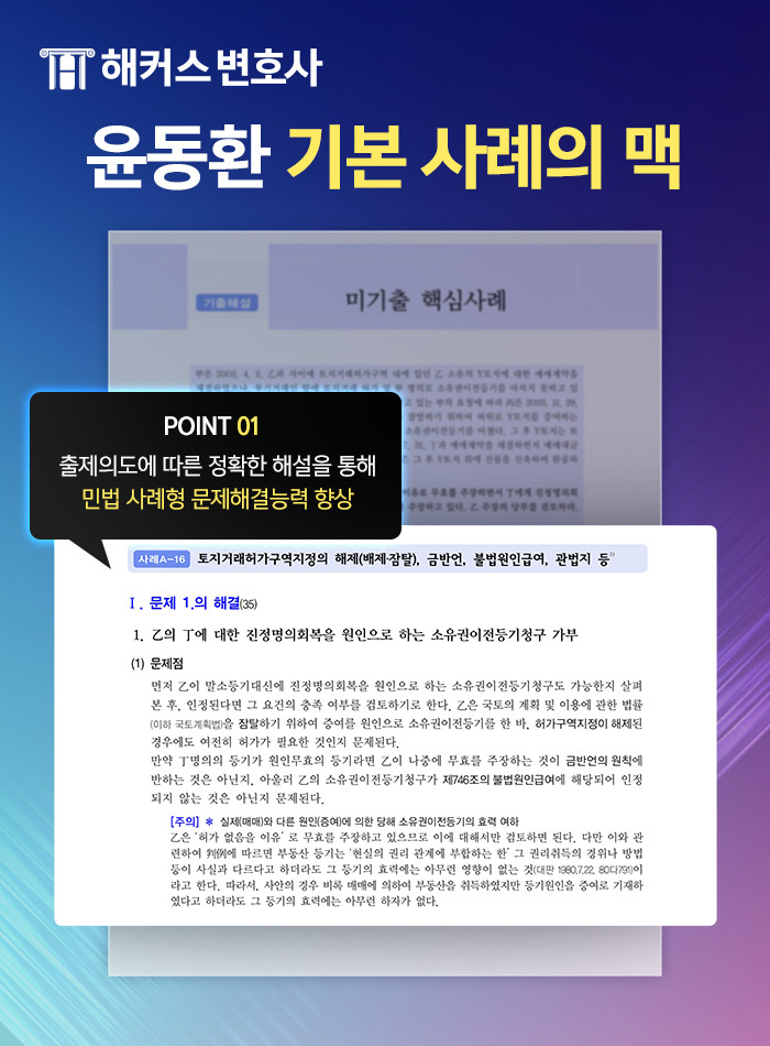 Point 01. 출제자의 출제의도에 따른 정확한 해설을 통해 민법 사례형 문제 해결의 기초를 다질 수 있습니다.