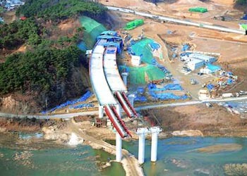 거더를 제작장에서 만드므로 품질관리가 용이하고, 하부지형에 영향을 받지 않아, 주로 높은 교각이나 강이나 바다를 통과하는 구간에 적용됩니다.