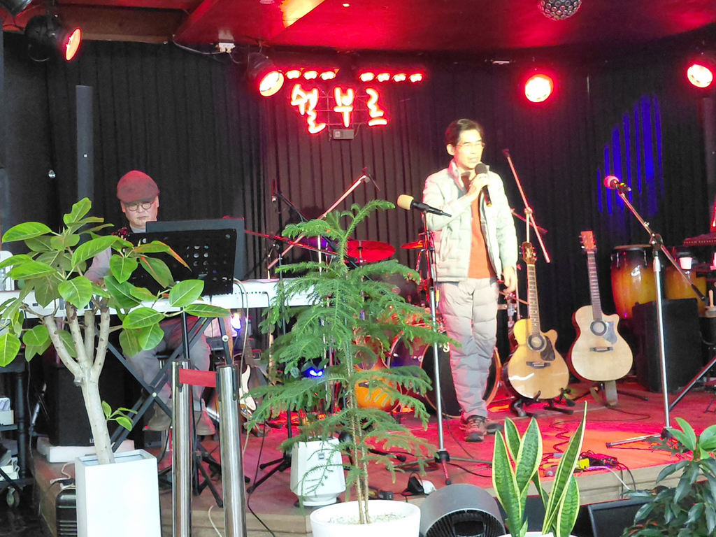 오늘 송년회를 위해 음악을 맡아주기로 했다.