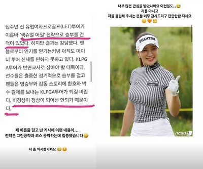 [온라인 일간스포츠 ] 골프선수 유현주가 “섹슈얼 어필 전략으로 승부를 건 적이 없다”면서 모 언론 보도 내용을 반박했다.유 선수는 17일 자신의 인스타그램 스토리에 기사 캡처 사진을 올리고 기사 내용에 대해 해명했다.