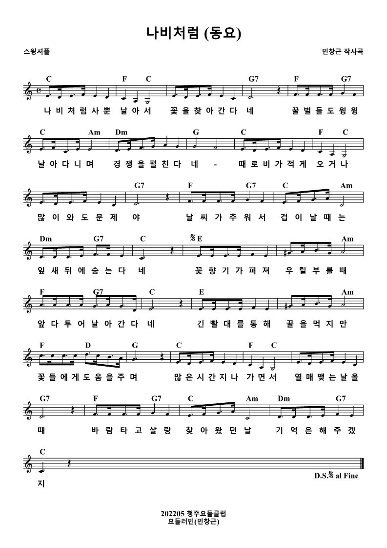 #나비처럼 #사뿐날아서 #꽃 #꽃을찾아간다네 #꿀벌 #꿀벌들도 #윙윙 #날아다니며 #경쟁을펼친다네 #때로 #비가적게오거나 #많이와도 #문제야 #날씨가추워서 #겁이날때는 #잎새뒤에 #숨는다네 #꽃향기 #꽃향기가퍼져 #우릴부를때 #앞다투어 #날아간다네 #긴빨대를통해 #꿀을먹지만 #꽃들에게 #도움을주며 #많은시간지나가면서 #열매맺는날 #올때 #바람타고 #살랑 #찾아왔던날 #기억은해주겠지 #동요 #새동요 #새가요 #건전가요 #찬양 #새찬양 #창작곡 #성악곡 #연주곡 #요들러민 #민창근 #충만교회 #청주충만교회 #용암동 #2022