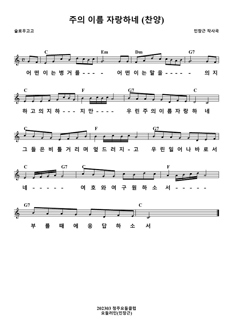 의 지 하 고 의 지 하 - - - 지 만 - - - - 우 린 주 의 이 름 자 랑 하 네