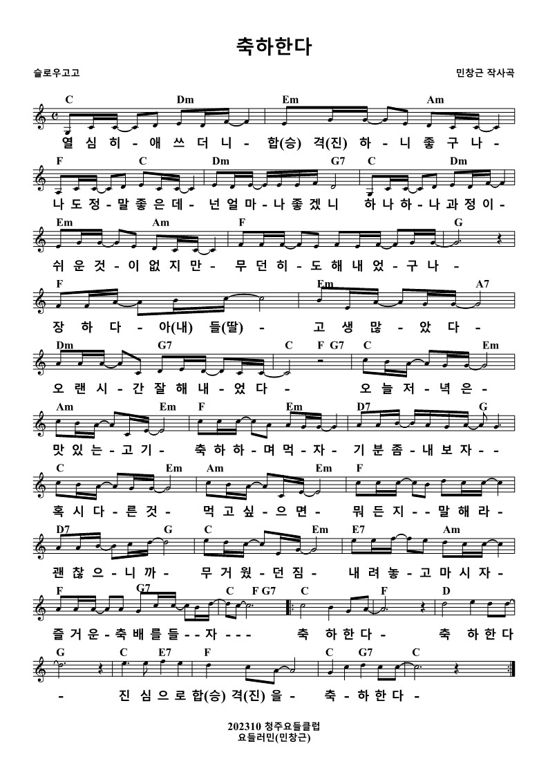 #축하한다 #축하해 #열심히애쓰더니 #합격 #승진 #합격하니좋구나 #승진하니좋구나 #좋구나 #나도정말좋은데 #넌얼마나좋겠니 #하나하나과정이 #과정 #쉬운것이없지만 #무던히도해내었구나 #장하다 #아들 #내딸 #장하다아들 #장하다내딸 #고생많았다 #오랜시간잘해내었다 #오늘저녁은 #맛있는고기 #축하하며먹자 #기분좀내보자 #혹시다른것먹고싶으면 #뭐든지말해라 #괜찮으니까 #무거웠던짐 #내려놓고마시자 #즐거운축배를들자 #축배 #진심으로합격을축하한다 #진심으로승진을축하한다 #합격노래 #승진노래 #합격축하노래 #승진축하노래 #합격축하송 #승진축하송#합격송 #승진송 #축하송 #가요 #새가요 #찬양 #새찬양 #아이들찬양 #어린이찬양 #창작곡 #연주곡 #요들러민 #민창근 #충만교회 #청주충만교회 #용암동 #노래많이만드는 #노래많이만드는요들러민 #노래많이만드는사람 #청주
