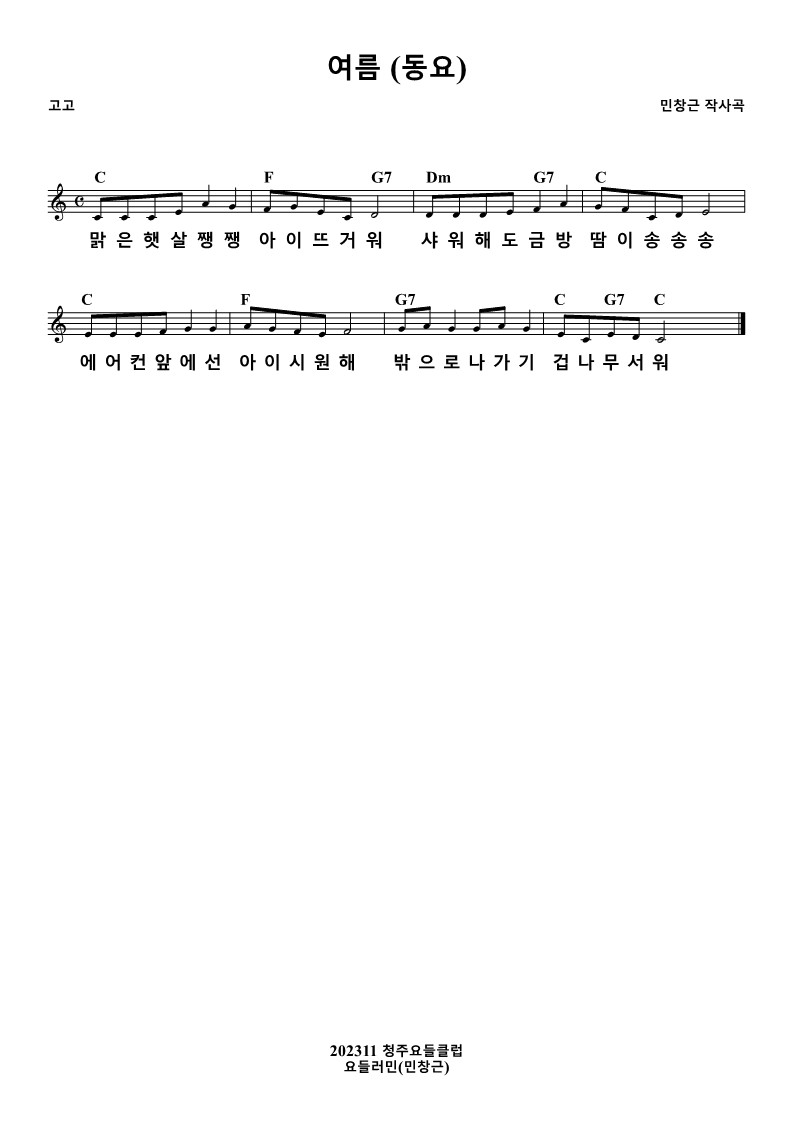 #여름 #맑은햇살 #쨍쨍 #아이뜨거워 #샤워해도 #금방땀이송송송 #에어컨앞에선 #아이시원해 #밖으로나가기 #겁나무서워 #동요 #새동요 #가요 #새가요 #찬양 #새찬양 #아이들찬양 #어린이찬양 #창작곡 #연주곡 #요들러민 #민창근 #충만교회 #청주충만교회 #용암동 #노래많이만드는 #노래많이만드는요들러민 #노래많이만드는사람 #청주