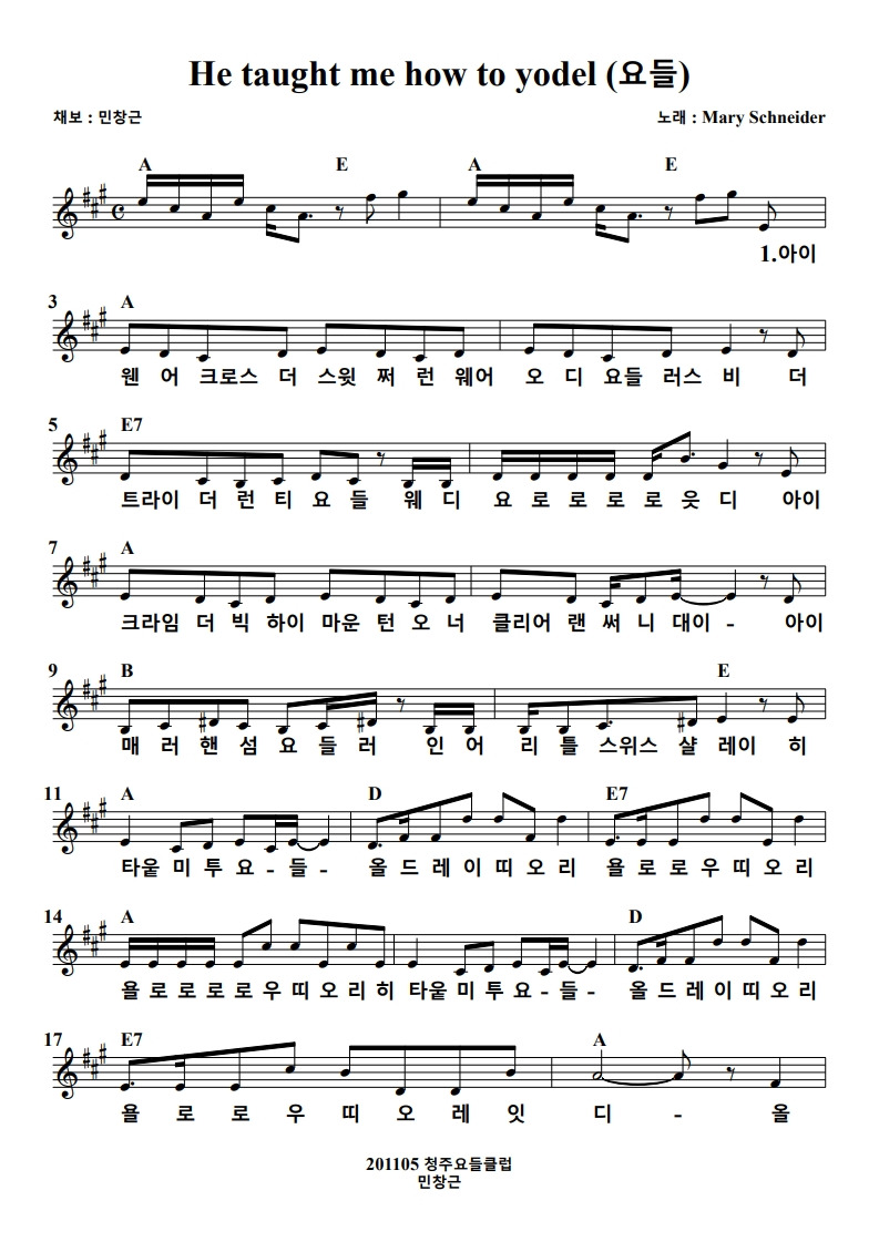 #Mary_Schneider #He_taught_me_how_to_yodel #요들 #새요들