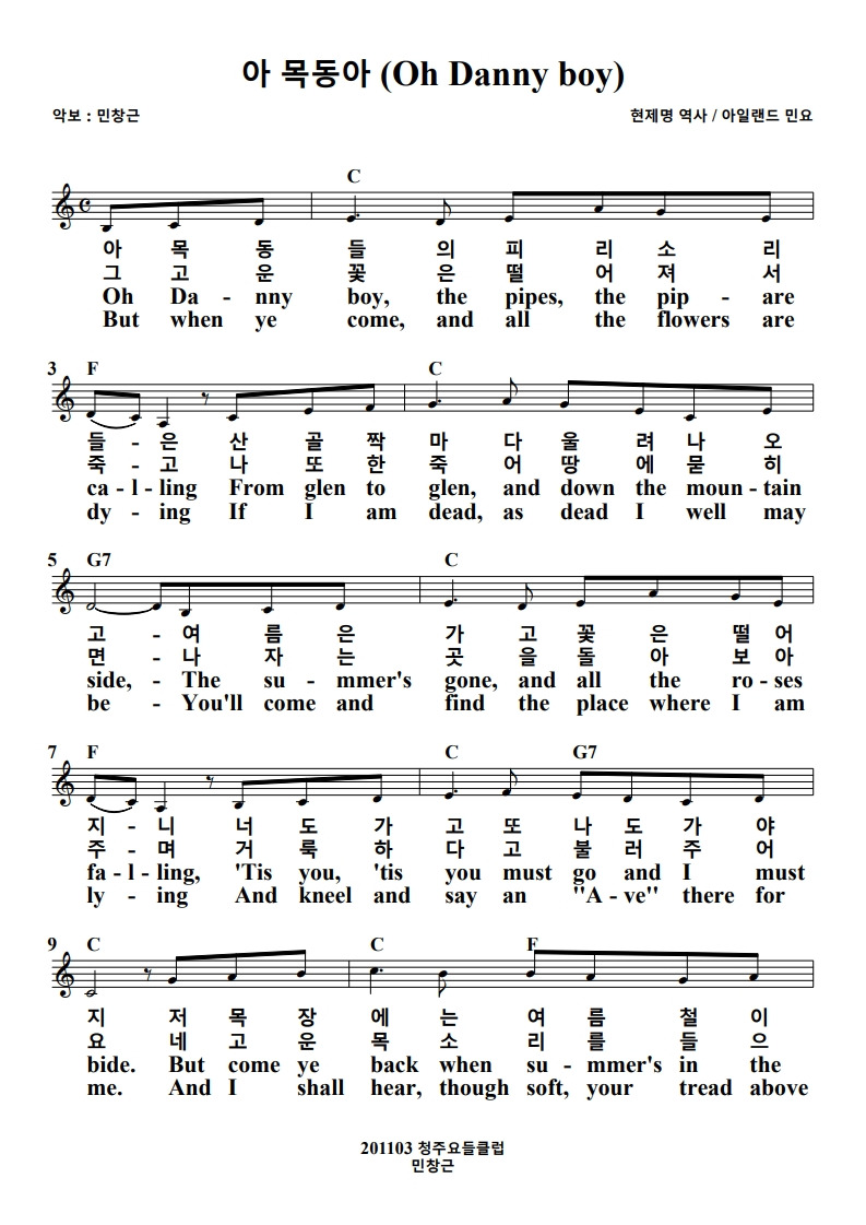 #Oh_Danny_boy #아목동아 #팝 #pop
