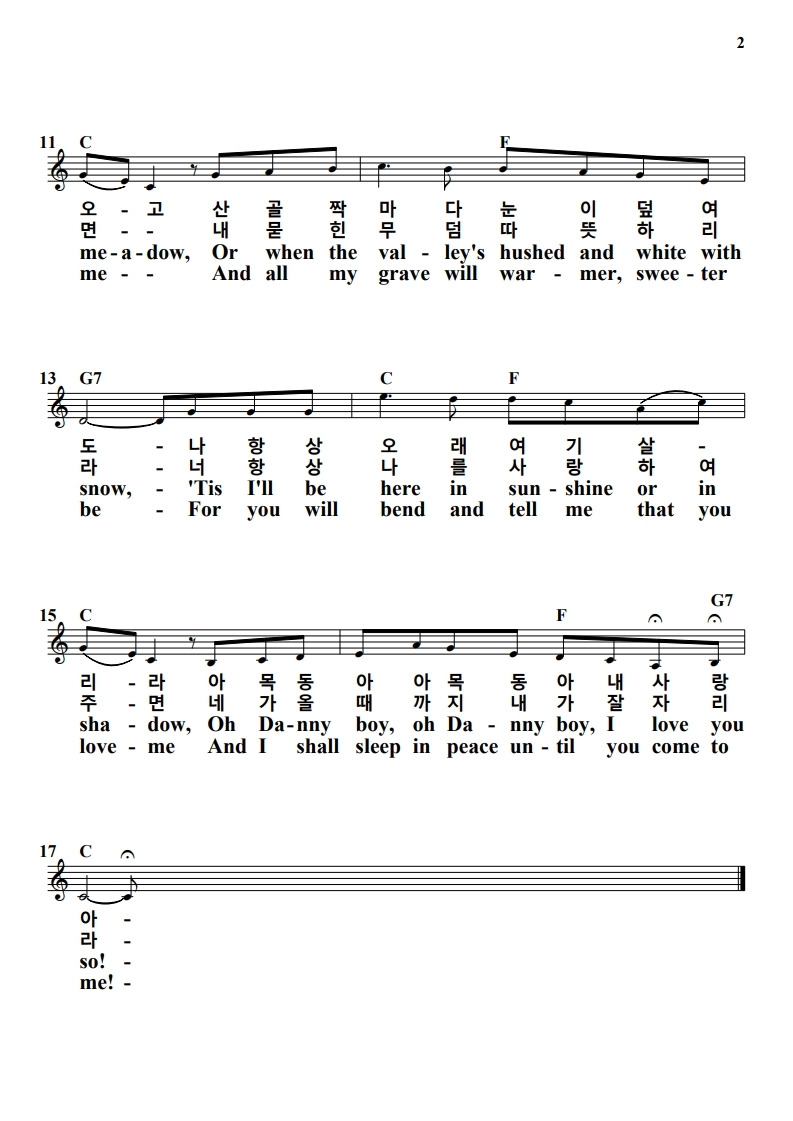 "Oh Danny boy"라는 노래는 "아 목동아"라는 제목으로 번역되어 많은 사랑을 받았습니다.