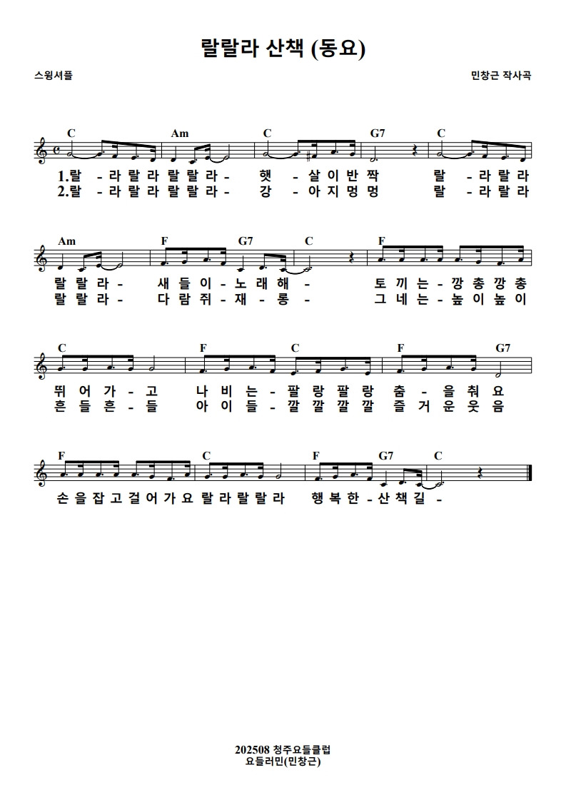 손 을 잡 고 걸 어 가 요 랄 라 랄 랄 라
