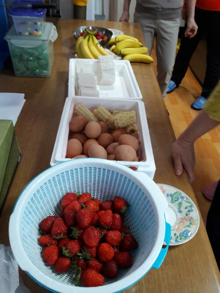 금요일 저녁에는 월요일 모이는 에델바이스팀이 5월 공연 때문에 또 모입니다. 총무님이 간식을 만들고 사왔네요.
