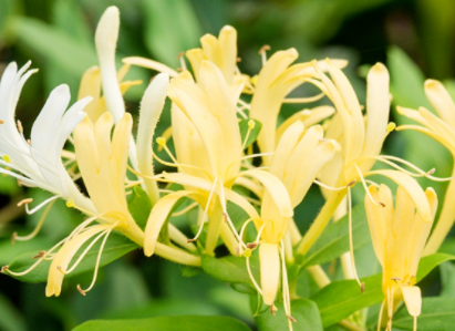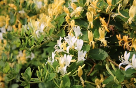 중부지방에서는 잎이 떨어지지만, 남부 지방에서는 그대로 겨울을 나는게 인동초 특징입니다. 일반적으로 6~7월에 개화를 하고 둥근 열매는 9~10월 검은색으로 익습니다. 꽃의 색이 흰색에서 노란색으로 변해 다른 말로 금은화라고 부르기도 합니다.