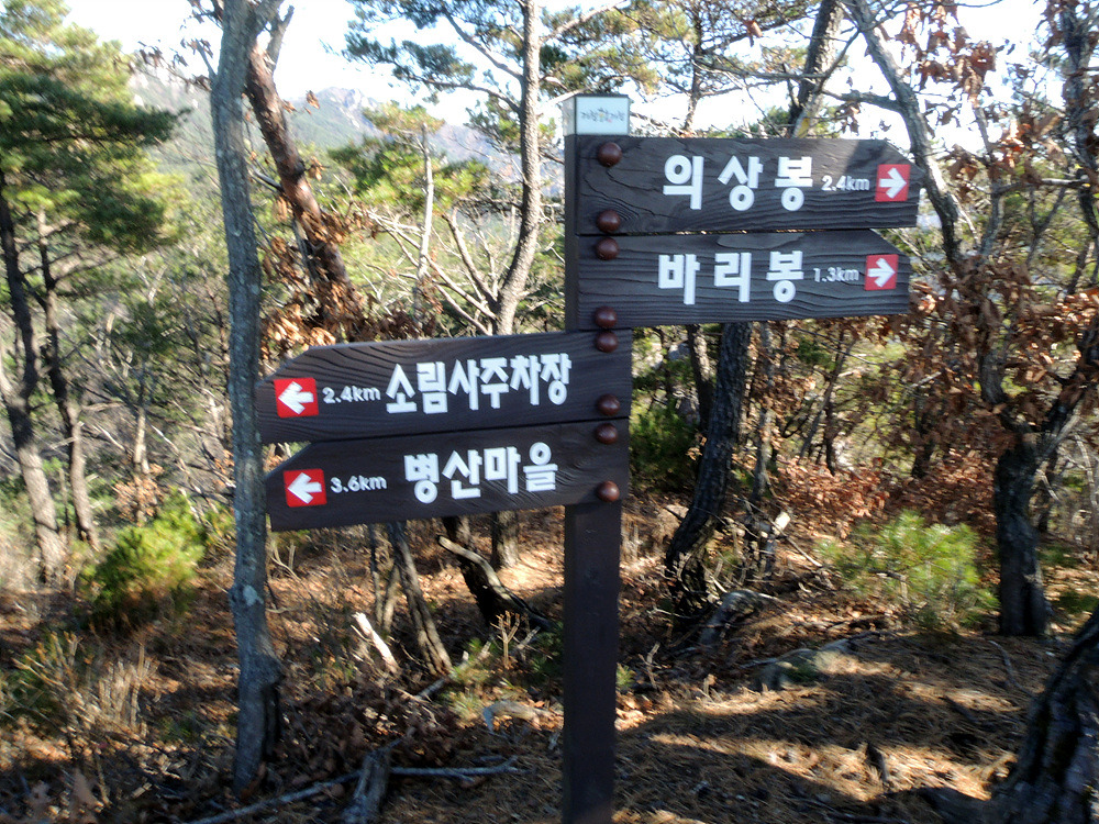코스;병산리.소림사/능선삼거리/장군봉956m/바리봉(삼)/