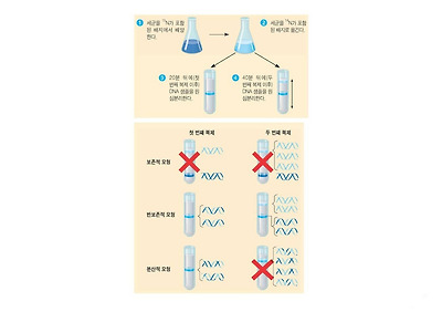 원심 분리한 2개의 튜브 안에 생긴 띠는 2단계에서 플라스크 안에 있던 DNA 샘플을 각각 20분 후 또는 40분 후에 원심 분리한 결과를 나타낸다.
