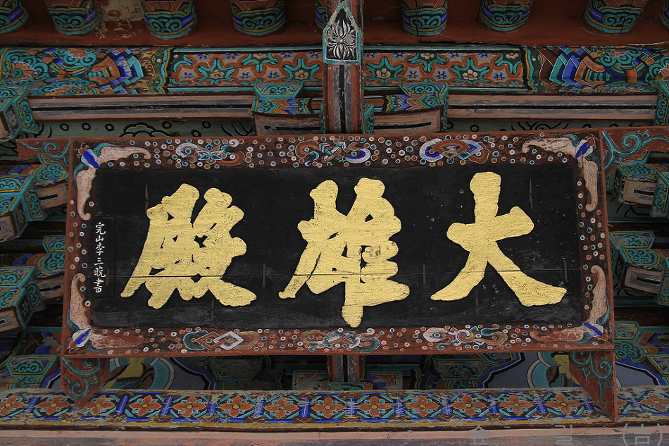 대웅전의 편액인데 완산 이삼만 선생의 글씨이다.
