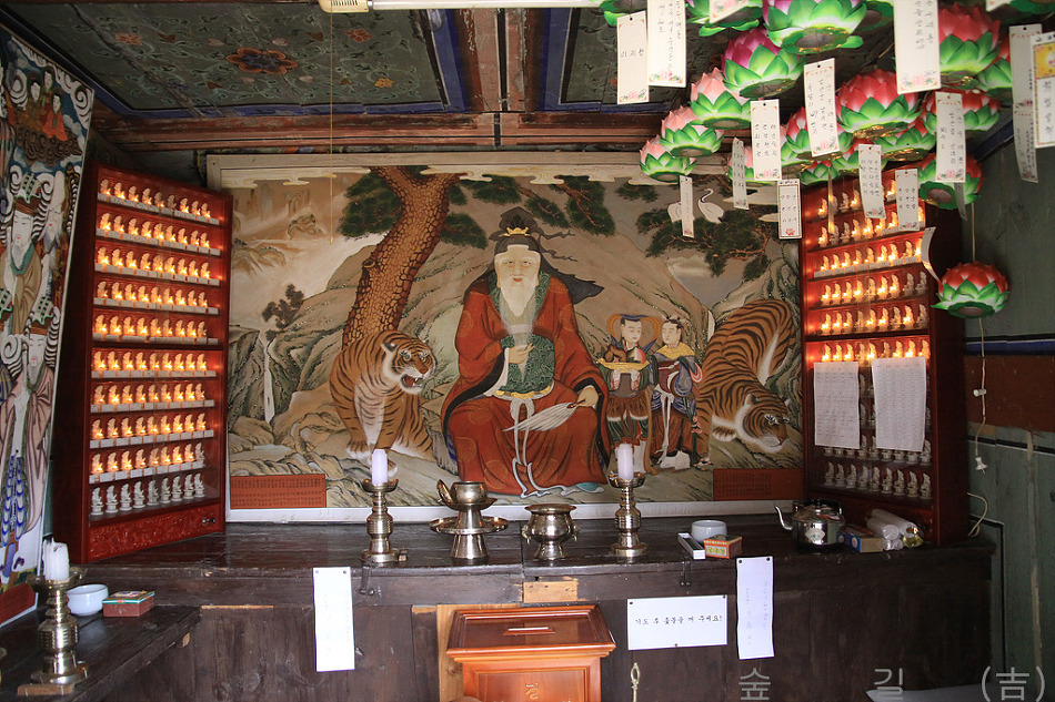 기허당 왼쪽으로 조금 올라가면 산신각이 있는데 정면에 산신이 모셔져 있고 왼쪽에 치성과여래의 탱화가 있었다.