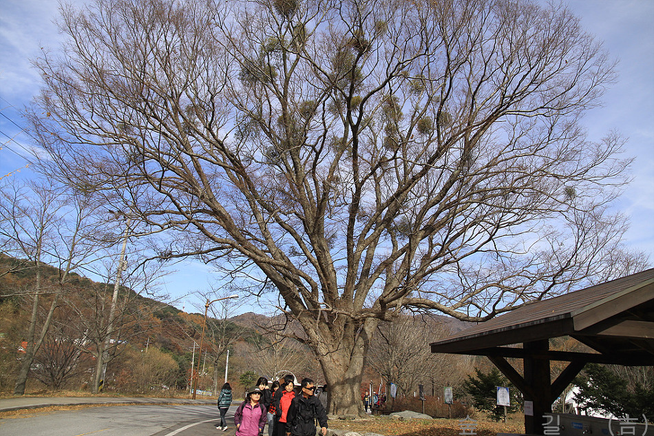 가는 길에 320년된 느티나무가 있었는데 겨우살이가 아주 많이 달려 있었다.