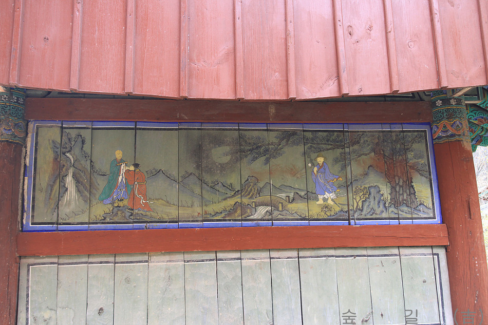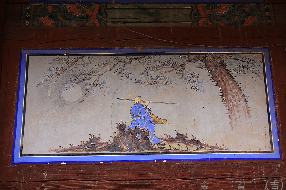 대웅전의 외벽에는 심우도도 팔상도도 아닌 선승같은 분이 그려져 있는데 고사와 관계 있는 지는 알 수 없었다.