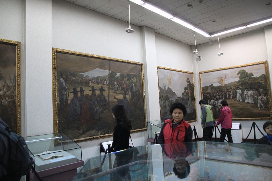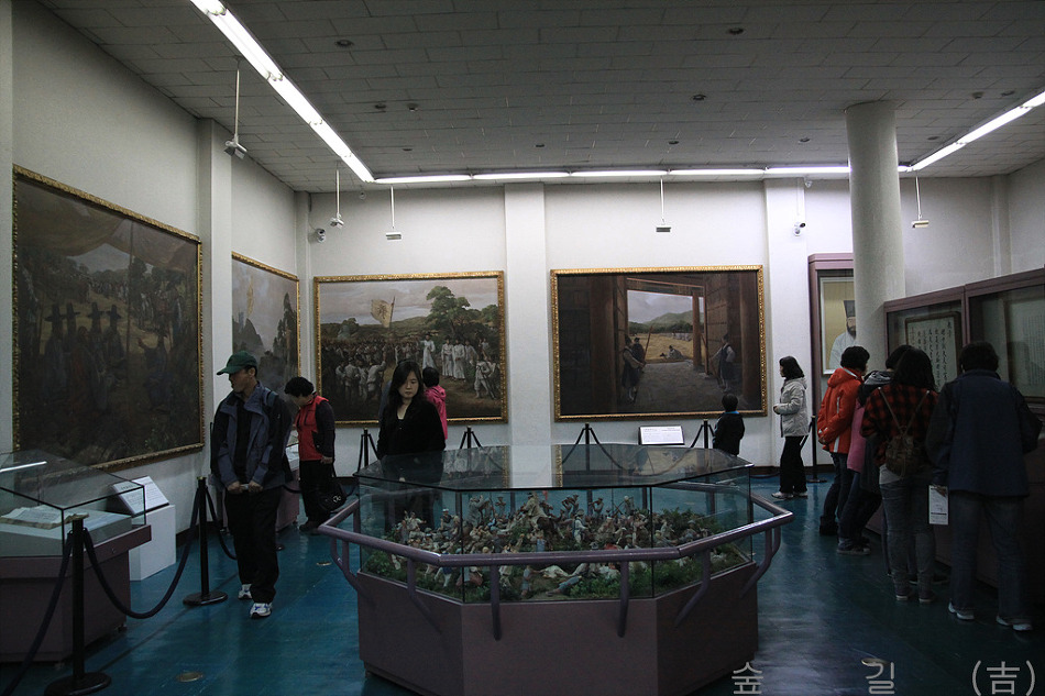 기념관에 가니 조헌선생님의 영정과 전투에서의 승리와 순절 장면이 그림으로 그려져 있고 사용하시던 유물도 전시되어 있었다.