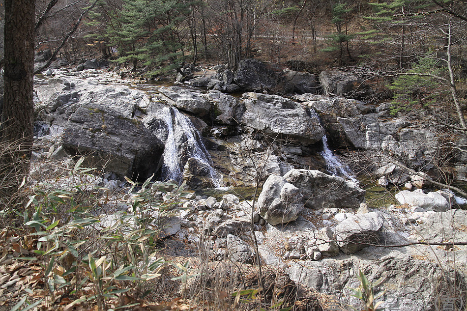 좌측에는 폭포가 3갈래로 내려오고 오른쪽에는 한갈래의 폭포였다.