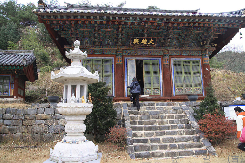 대웅전은 다포식 맞배지붕으로 아담하게 지어져 있었고 그 앞에는 변함없이 석등이 있었다.