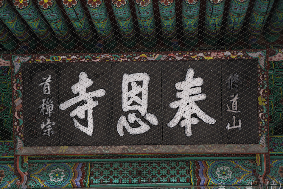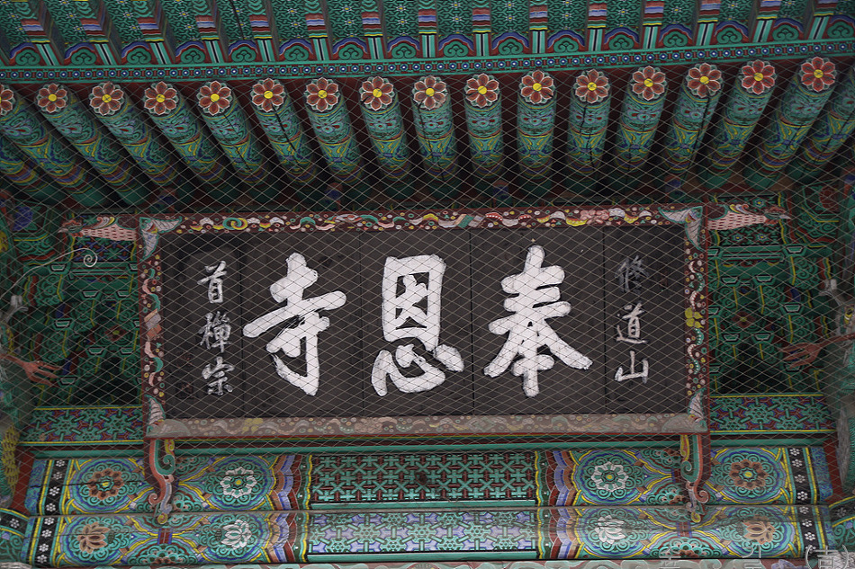 봉은사란 편액 옆에는 우측에 수도산, 좌측에 도선종이란 글이 종으로 쓰여 있다.