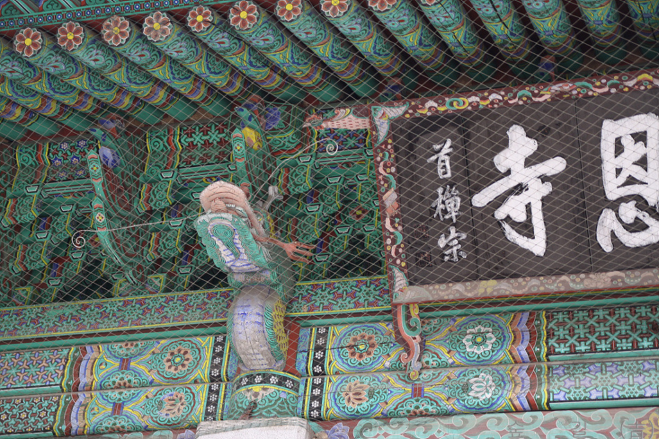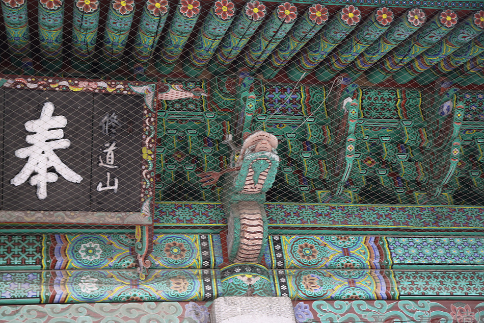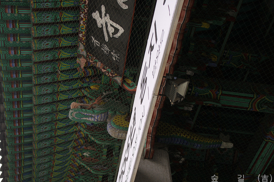 전면 3칸은 건물인데 편액 옆에는 용두가 튀어 나오게 조각되어 있는데 아마도 부처님의 영역을 지키는 상징처럼 느껴진다.