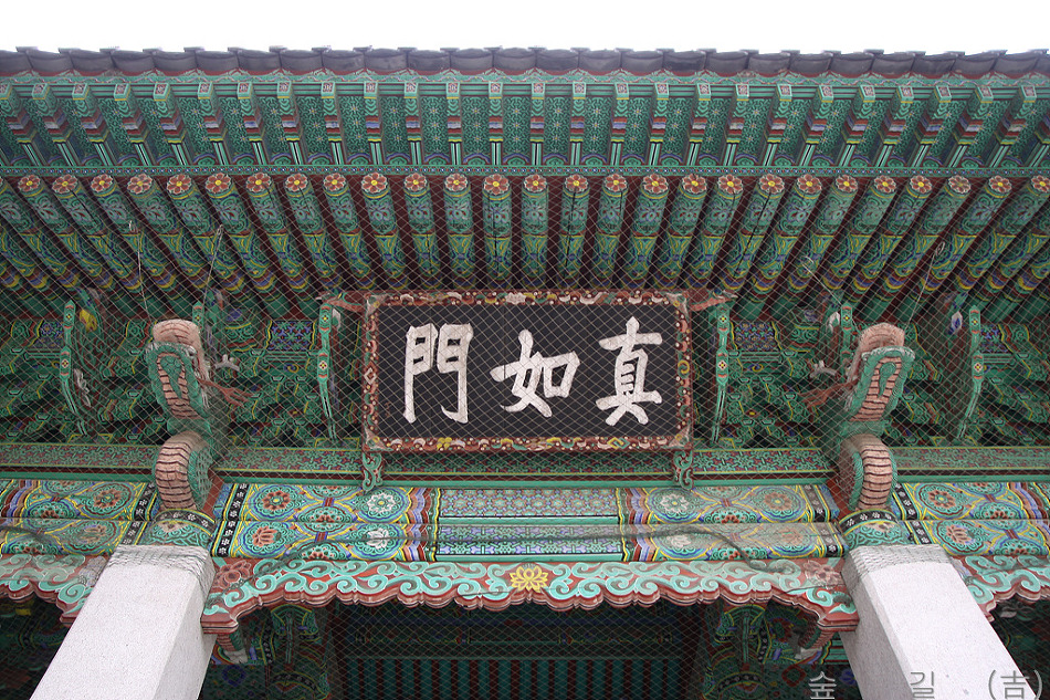 문을 들어와서 뒤돌아 보니 진여문 편액이 있다.
