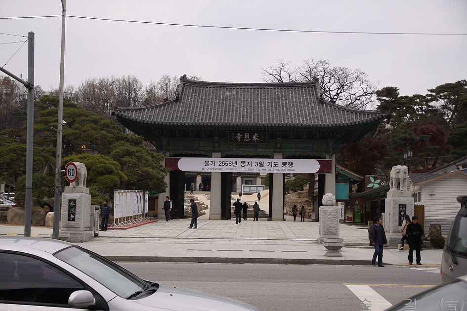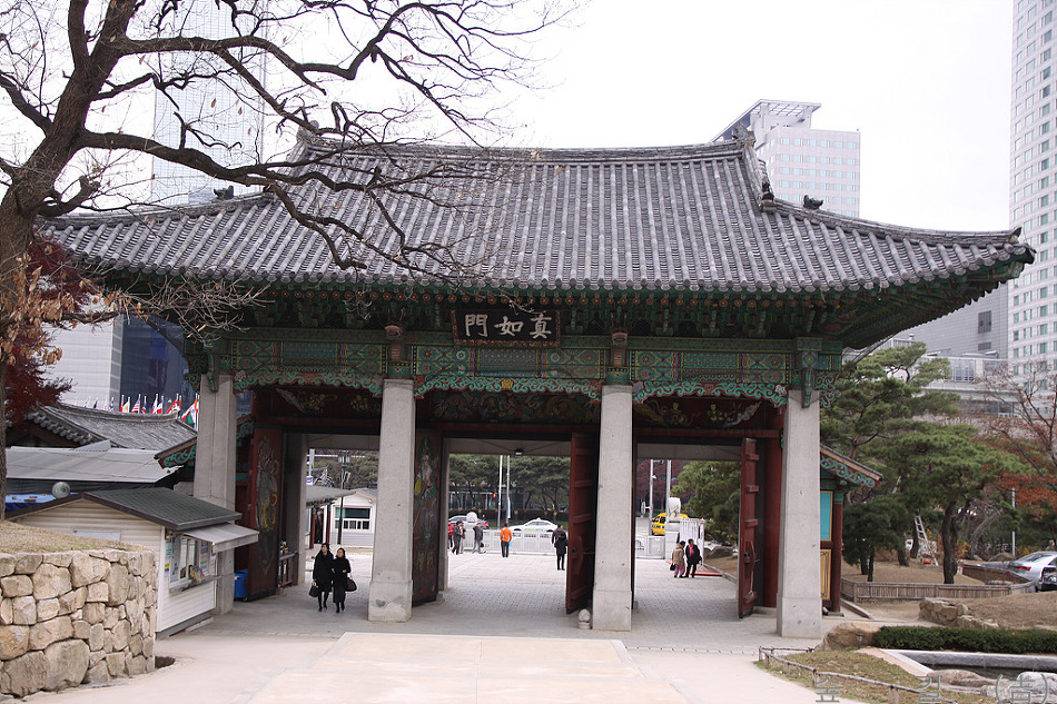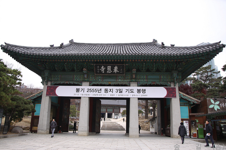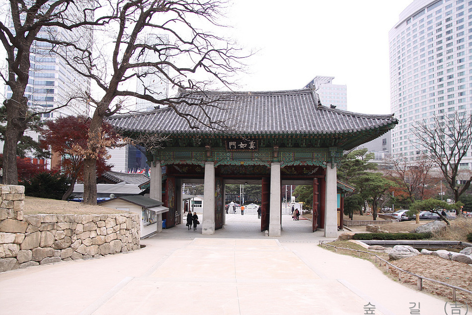 봉은사 입구에는 진여문이 있는데 보통 절에는 일주문이 있는 것이 보편적이나 봉은사는 도심에 있다 보니 아니 예전에는 있었을 지도 모르는데 땅을 잃어버려서 일주문이 없다.