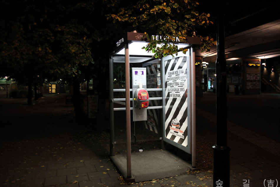 스웨덴의 버스정류장은 비와 눈을 피할 수 있고 의자는 한쪽에 1/3 면적 정도로 다소곳하게 설치되어 있다.