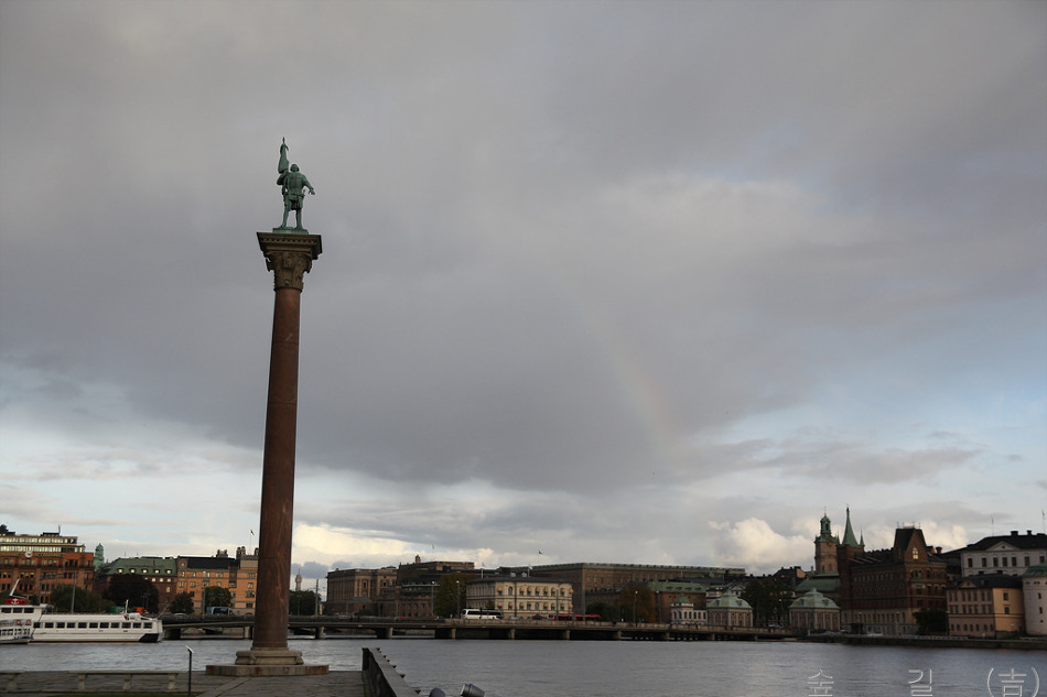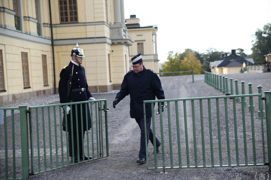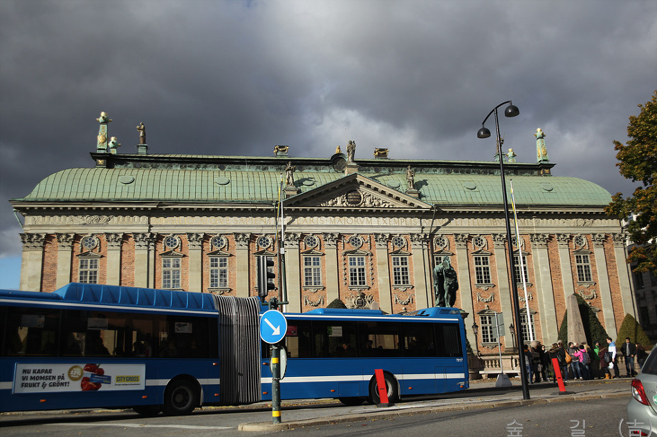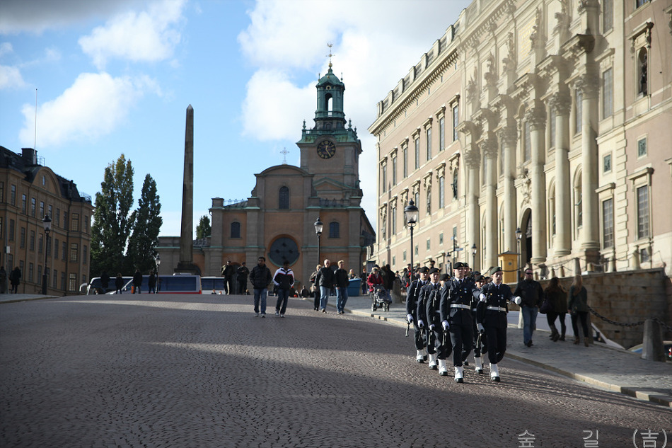 브랑겔궁전인데 호수가 공원가는 길에 있었다. 호수가 공원에서 바라본 시청의 모습인데 앞에 현악기 든 분이 바로 우리나라로 치면 김삿갓같은 방랑시인이라고 한다. 저 동상의 주인공이 프랑스 장군 베르나도테로 1814년에 덴마크로부터 노르웨이를 얻어내고, 1818년 왕위에 올라 칼 14세라 칭하였다. 그가 현 스웨덴 왕조의 시조이며 자유주의 발전을 이끌게 되었다고 이영란 선생님이 말씀하셨다. 전망이 좋은 언덕으로 가는 중인데 저 타워를 만났는데 이름이 카타리나히쎈 타워라고 한다. 아마도 저 위에 올라가도 전망이 좋을 것같다. 오른쪽의 저 굴은 핵전쟁을 대비하여 파 놓은 굴이라고 한다. 전망좋은 언덕에서 감라스탄쪽을 바라본다. 첫날 마지막으로 들른 쓰레기매립장을 환경친화적으로 바꾼 하마비허스타드 친환경도시이다. 첫날 저녁은 중국집에서 중국식으로 먹었는데 중국에서 먹은 것과 비슷한 느낌이 들었다. 둘째날 새벽 산책길에 만난 스웨덴 스톡홀름의 공중전화 박스이다. 스칸딕 브라마 호텔 앞의 버스 승차장의 모습이다. 호텔안쪽에 작은 정원에서 본 미국자리공 같은데 우리나라에서 보던 것과 조금 틀리다. 카를린스카의과대학에서 본 좌측의 노벨동상과 노벨의학상을 발표하는 노벨포럼 건물이다. 카를린스카의과대학 사이언스 파크인데 좌측 붉은색 건물은 기존 건물이고 우측 흰건물은 짓거나 지을 계획인 건물이다. 스웨덴도 미래성장 동력 확보를 위해 투자와 노력을 많이 하고 있는 것같다. 저기 보이는 건물이 왕립스웨덴오페라(Royal Swedish Opera)극장이다. 스웨덴 왕궁의 모습이다. 스웨덴의 국회의사당이다. 앞에 보이는 배가 우리가 탄 유람선이다. 유람선에서 보니 박물관이 보이는데 좌측이 북방민속박물관이고 우측이 바사박물관이다. 저기 보이는 것이 놀이동산이다. 성 같은 것이 있어 찾아 보니 카스텔홀멘의 성이라고 한다. 저기 바이킹 라인이 정박하고 있다. 저기 보이는 것은 세프스홀멘 Skeppsholmen 섬에 있는 호스텔 AF Chapman 이다 국립박물관의 모습이다. 갑문에 물이 차올라서 배가 속도를 내기 시작한다. 유람선에서 본 스톡홀름 시청의 모습이다. 유람선은 방금 아치형 다리를 지났다. 큰 아치형 다리도 지났다. 백조가 그림같이 헤엄치는 풍경도 있다. 앞에 갑문은 위에서 아래로 닫히는데 여기는 옆에서 가운데로 갑문이 닫힌다. 이 사진은 유람선 운항 안내도이다. 엘리트 호텔 옆도 지난다. 유진미술관이다. 기린처럼 생긴 기증기가 재미있다. 유람선에서 내려 조금 가니 왕립드라마극장이 있다. 스웨덴 경찰 순찰차의 모습이다. 곧 있으면 스톡홀름 오픈이 열린다고 해서 왕립테니스코트를 가보기로 했다. 그리고 스웨덴 왕립공과대학을 가보았다. 저녁을 먹은 한국 음식점인 코리아 하우스이다. 왕이 산다는 드로트닝홀름성에 왔다. 근위대장이 나가도록 근위병이 문을 열어주고 있다. 정원으로 가는 문이다. 정원쪽에서 궁을 바라본다. 근위병들이 머무르는 천막이다. 중국궁전 쪽에서 본 가로수의 모습이다. 중국궁전의 모습이다. 중국궁전에서 나오는 길인데 가로수의 단풍이 많이 물들었다. 정원 호수에는 백조도 한가로이 놀고 있다. 저 배를 타고 섬으로 가서 이케아를 구경하러 간다. 드디어 이케아에 도착했다. 이케아의 모든 것을 보여줄 수 없어 한장으로 대신한다. 대형 슈퍼에도 갔다. 술 파는 가게에도 갔다. 점심은 마리에빅에서 뷔페를 먹었는데 호수가 옆이어서 경관도 좋고 음식 맛도 좋았다. 이런 매점을 지나서 시청안으로 들어간다. 노벨상 만찬에 사용되는 식기가 전시되어 있다. 시청 의회 회의실의 모습이다. 시청 회랑의 모습인데 안쪽에는 안쪽을 보는 사람들을 위해 그림이 그려져 있다. 드디어 황금의 방에 왔다. 저 아래가 노벨상 만찬장의 모습이다. 시청구경을 하고 나오니 상서로운 무지게가 떴다. 이제 감라스탄을 구경하러 왔고 먼저 보이는 것은 대성당이다. 왕궁이 커서 한 화면에 다 들어오지 못한다. 노벨박물관의 모습이다. 감라스탄의 거리 모습이다. 윈도우에 비친 기념품, 공예품이다. 저 분도 스웨덴에서는 유명한 분이라고 하였던 것같다. 이제 오늘도 해가 거의 져가고 있다. 저 우물이 스토르토니에트 광장의 우물이다. 이 사진이 감라스탄 거리중 옆서에 나오는 사진이다. 오늘 저녁도 한국식당 남강에서 먹기로 했다. 마지막날인데 아침에도 브라마역 산책에 나서서 거리시장의 야채가게를 담았다. 지나가다가 중앙역을 담았다. 세르겔광장의 크리스탈 타워이다. 세르겔광장의 모습이다. 문화회관인 컬쳐하우스의 모습이다. 바사박물관에서 본 바사호의 모습이다. 스칸센에 도착하였다. 스칸센에서 만난 참새가 아저씨 뭘 보셔요? 먹을 것이나 주던지 한다. 어린이가 물범과 놀고 있다. 집들 너머로 시가지가 보인다. 전통집의 모습이다. 연못과 풍경이 잘 어울린다. 우리는 나가는데 들어오는 사람이 많다. 마지막 일정은 왕궁 근위병 교대식인데 저기 오벨리스크와 대성당 그리고 근위병이 보인다. 군악대가 공연중이다. 독일교회의 첨탑이 보인다. 여자 근위병이 근무중이다. 구경하는 사람도 많다. 감라스탄에는 세상