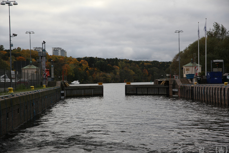 호수인지 바다인지 구분이 잘 가지 않지만 호수라면 멜라렌호수로 생각되는데 한바퀴 도는데 수위 조절을 위한 갑문 2개를 통과하였다.