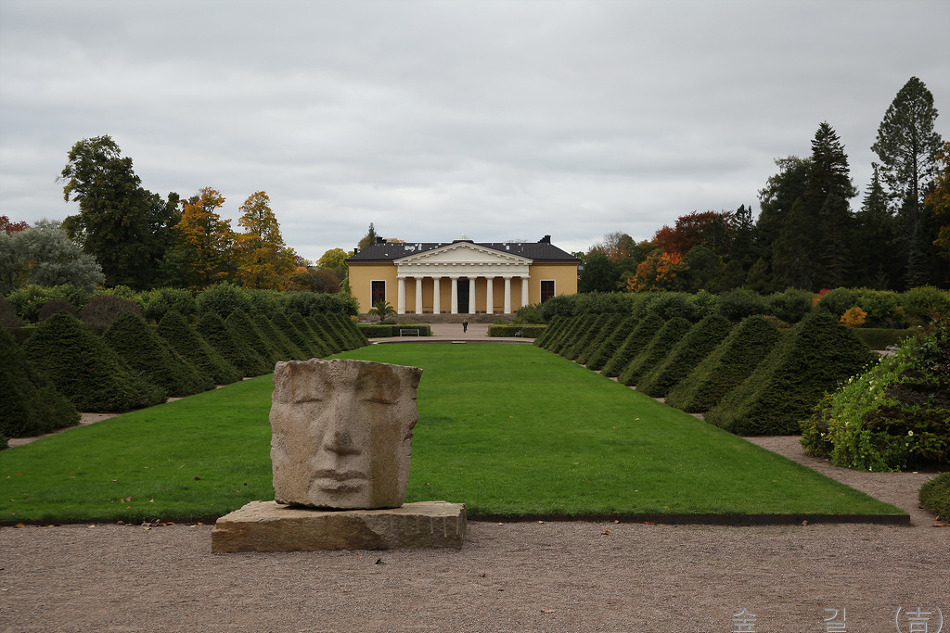 그 길로 해서 웁살라대학 식물원인 린네식물원으로 갔는데 들어가자 마자 만난 것은 네모진 돌에 사람 얼굴을 조각한 조형물이었다.