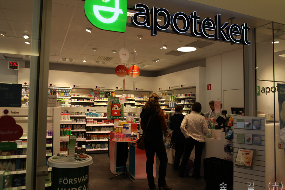 웁살라 시내 쇼핑센터속에 있는 약국 내부의 모습이다.
