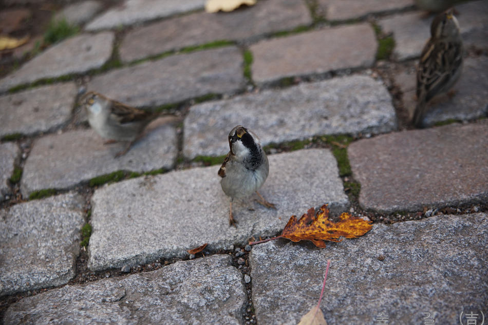 여기도 까치, 까마귀, 박새, 참새가 보였는데 참새는 우리나라 보다 조금 더 통통하고 주둥이가 노란 색을 띠고 있는데 참새중 종류가 다른가 확인이 필요하였다.