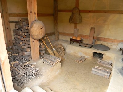 부엌이 있는데, 기존 초가의 방식을 그대로 본떠서 만들었다. 방과 부엌 안