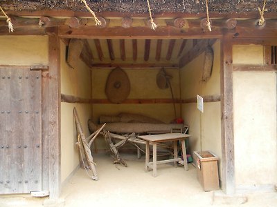 초가의 방문과 부엌문은 모두 열려있어 내부를 훤히 구경할 수 있으나 그저 눈으로만 구경하기