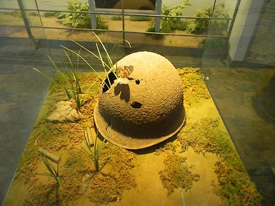 ▲ 2층에 전시된 6.25전쟁의 상징물, 녹슨 철모