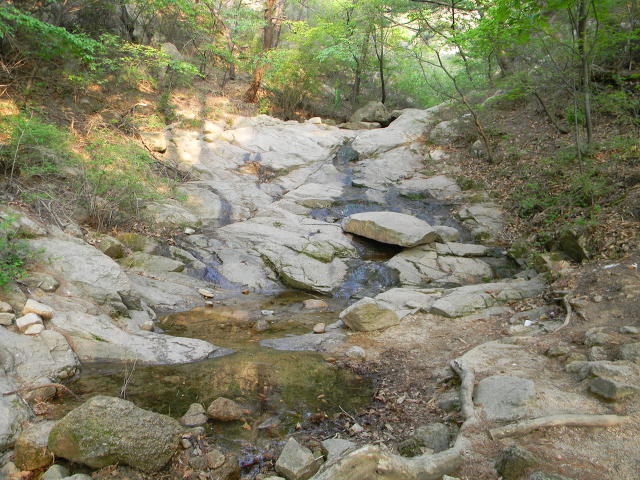 ▲ 하얀 피부의 반석 사이로 물이 졸졸 흐르는 폭포동 계곡 |