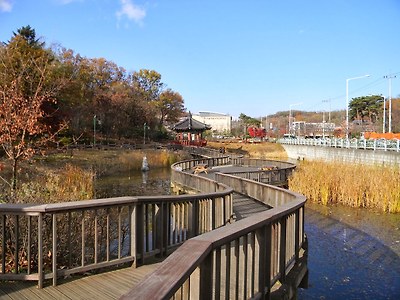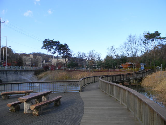 궁동 한복판에 자리한 궁동생태공원은 기존의 궁동저수지를 손질한 일종의 호수공원이다. 길