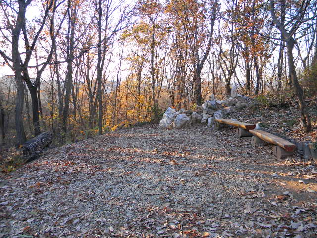 의자 너머로 보이는 하얀 바위가 차돌바위이다. 그 유래는 모르겠음. |