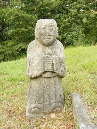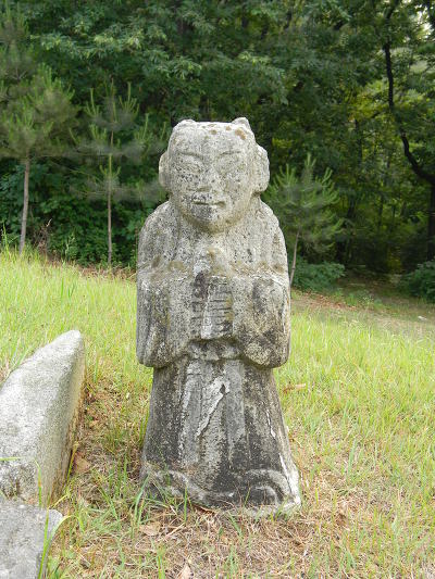 다른 무덤과 달리 문인석 대신 작은 동자석 1쌍을 두었다.