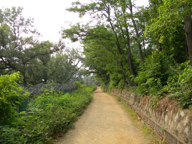▲ 암사정수사업소 철조망과 나란히 이어진 고덕산 서쪽 숲길